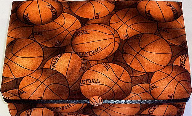 Let's play some Hoops! This handsome gift box, covered with basketballs is wrapped with black ribbon, finished off with basketball button. Look inside, and you'll find more basketballs against a black fabric background. Makes a great gift box for basketball fans, players and coaches alike. Comes in one size only - 8" x 5" x 2". Check out our Basketball Hoops and other sports themed boxes as well!